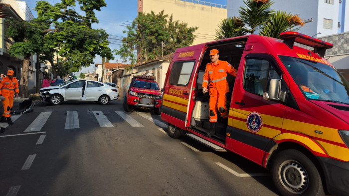 Vítimas foram socorridas pelas equipes do Corpo de Bombeiros e SAMU (Foto: Corpo de Bombeiros) Dois homens foram socorridos na manhã de quarta-feira (29/10) após o choque entre carro e moto no
